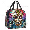 Ланч-бокс с изображением котенка-кошки «Сахарный череп» на День мертвых, многофункциональный мексиканский Хэллоуин, цветочный термохолодильник, сумка для обеда с едой