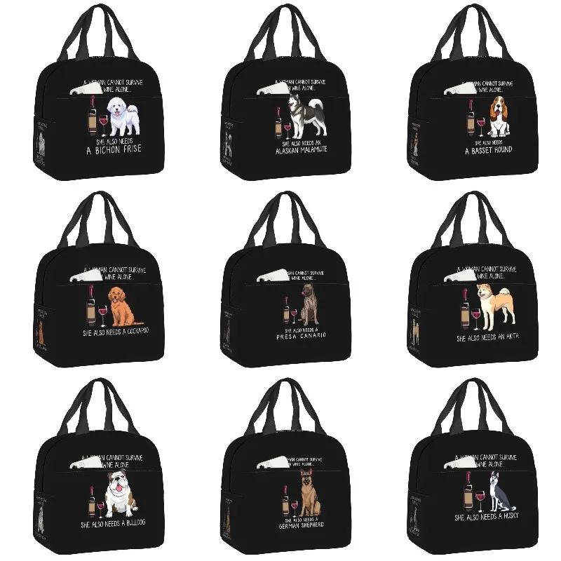 Бишон фризе и вино смешная собака портативный ланч-бокс водонепроницаемый питомец щенок термо-кулер для еды изолированная сумка для ланча офис работа