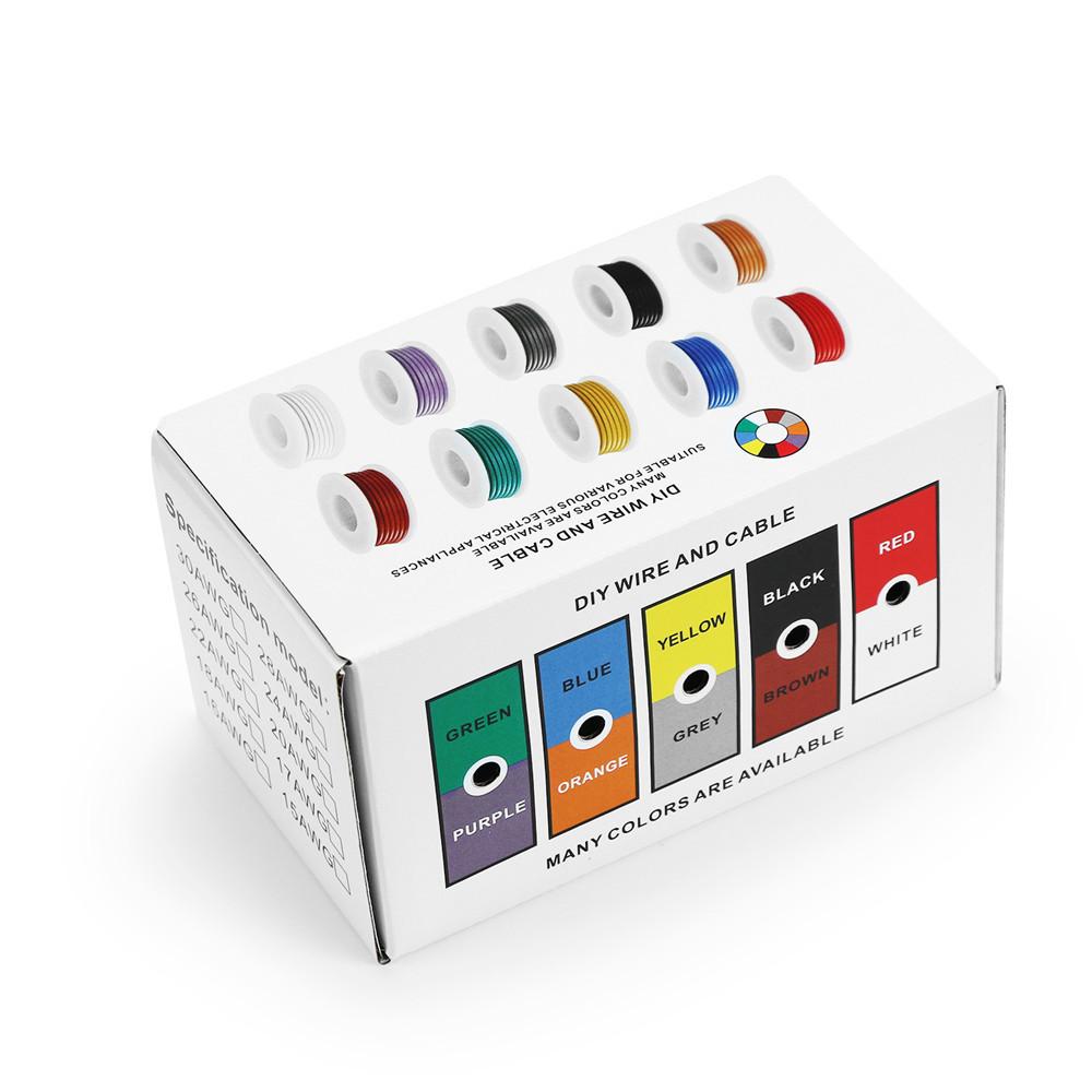 Электрический провод 22AWG Гибкие силиконовые провода 22 калибра Многожильный лужёный медный провод 5 цветов 16,4 фута/5 м каждый или 32,8 фута/10 м каждый