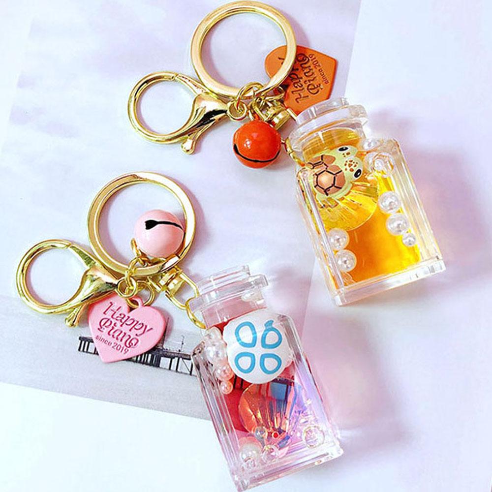 Cute Quicksand Bottle Resin Acrylic Marine Accessories Car Pendant Bag Charm Key Ring Keychain