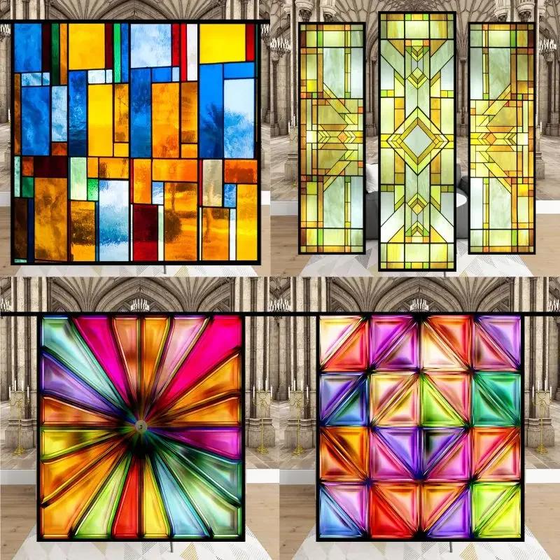 Наклейки на витражные окна, пленка для приватности, церковный стиль, статическое прилипание, декоративные матовые пленки для окон, индивидуальный размер