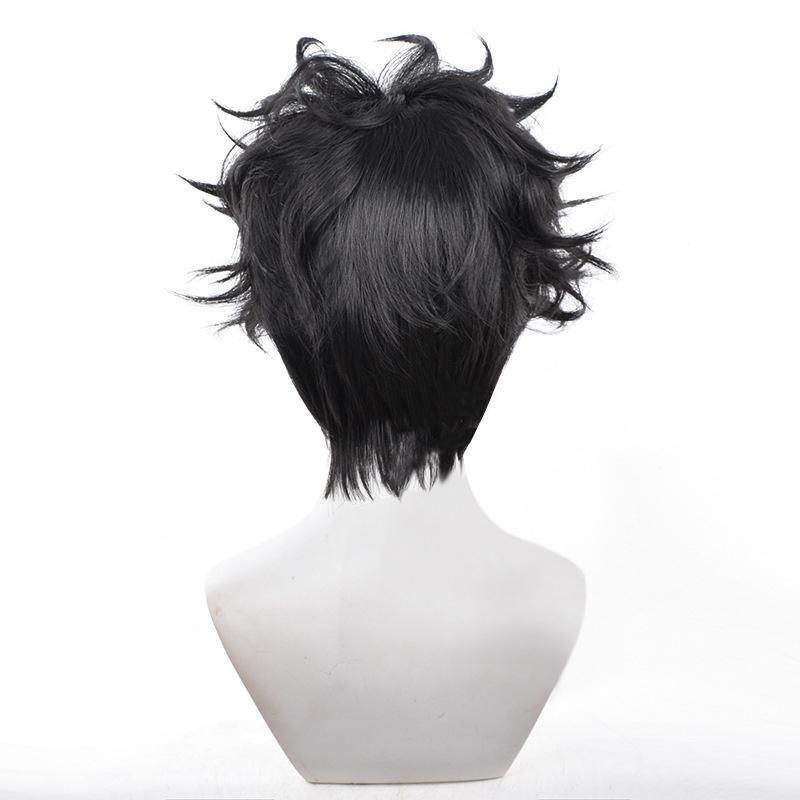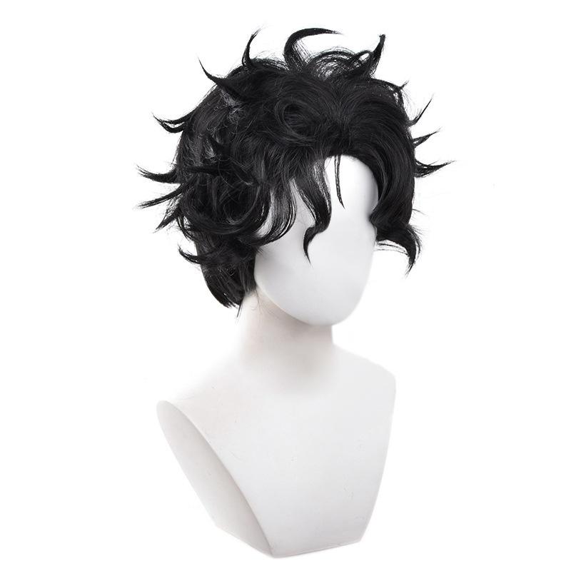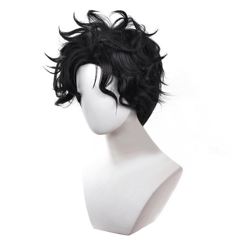 Кен Такакура Косплей Парик Аниме Dandadan Окарун Парик 30см Короткий Черный Вьющийся Термостойкий Синтетический Парик + Шапочка для парика