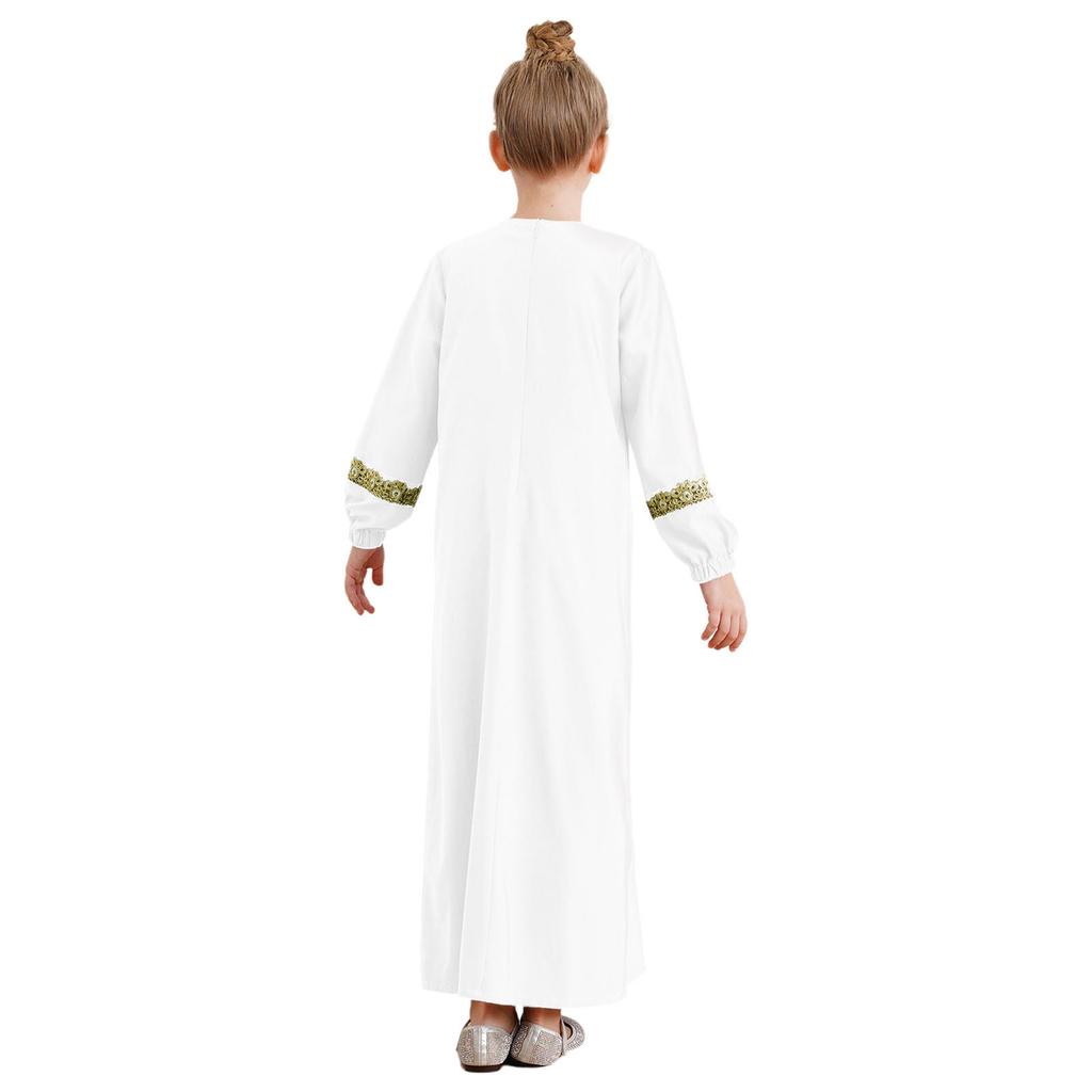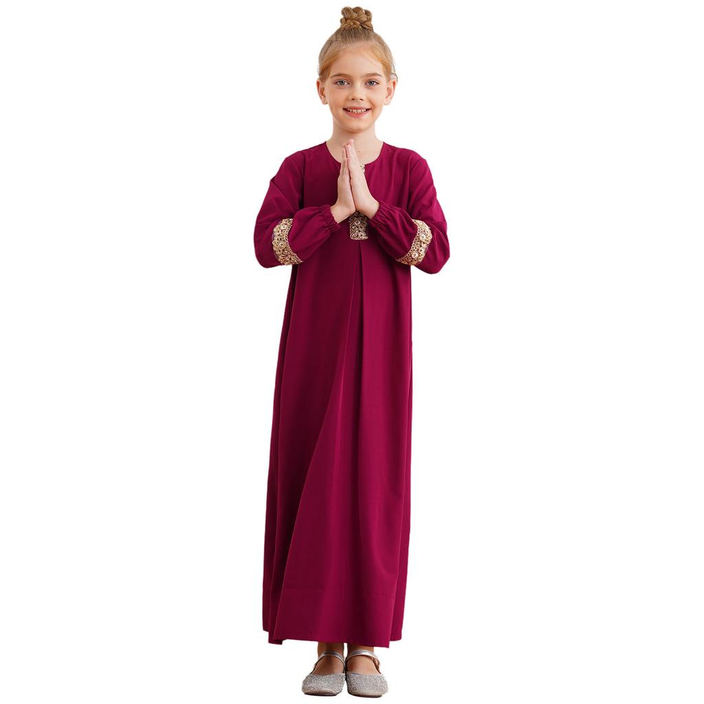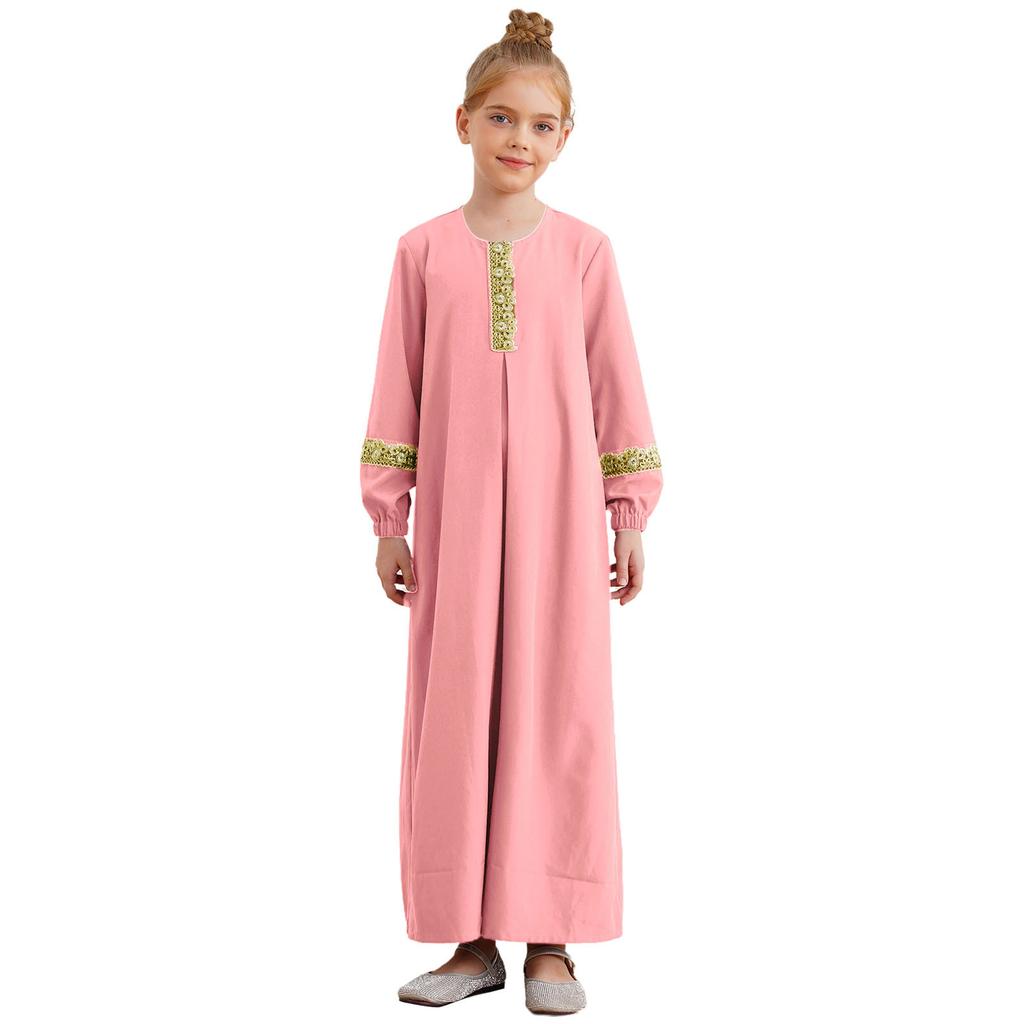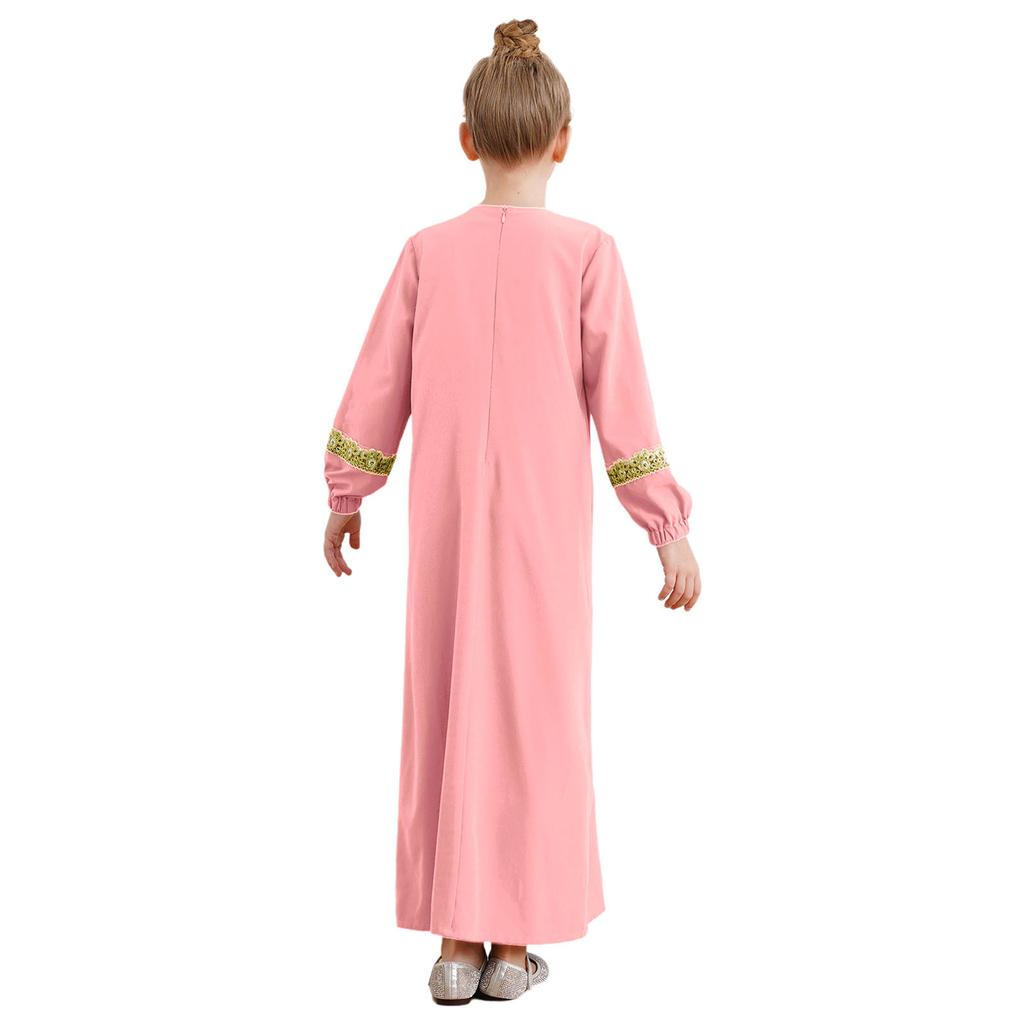 Мусульманское платье Абая для девочек, с круглым вырезом, длинными рукавами, макси-платье для тематических вечеринок Рамадана и маскарадных мероприятий