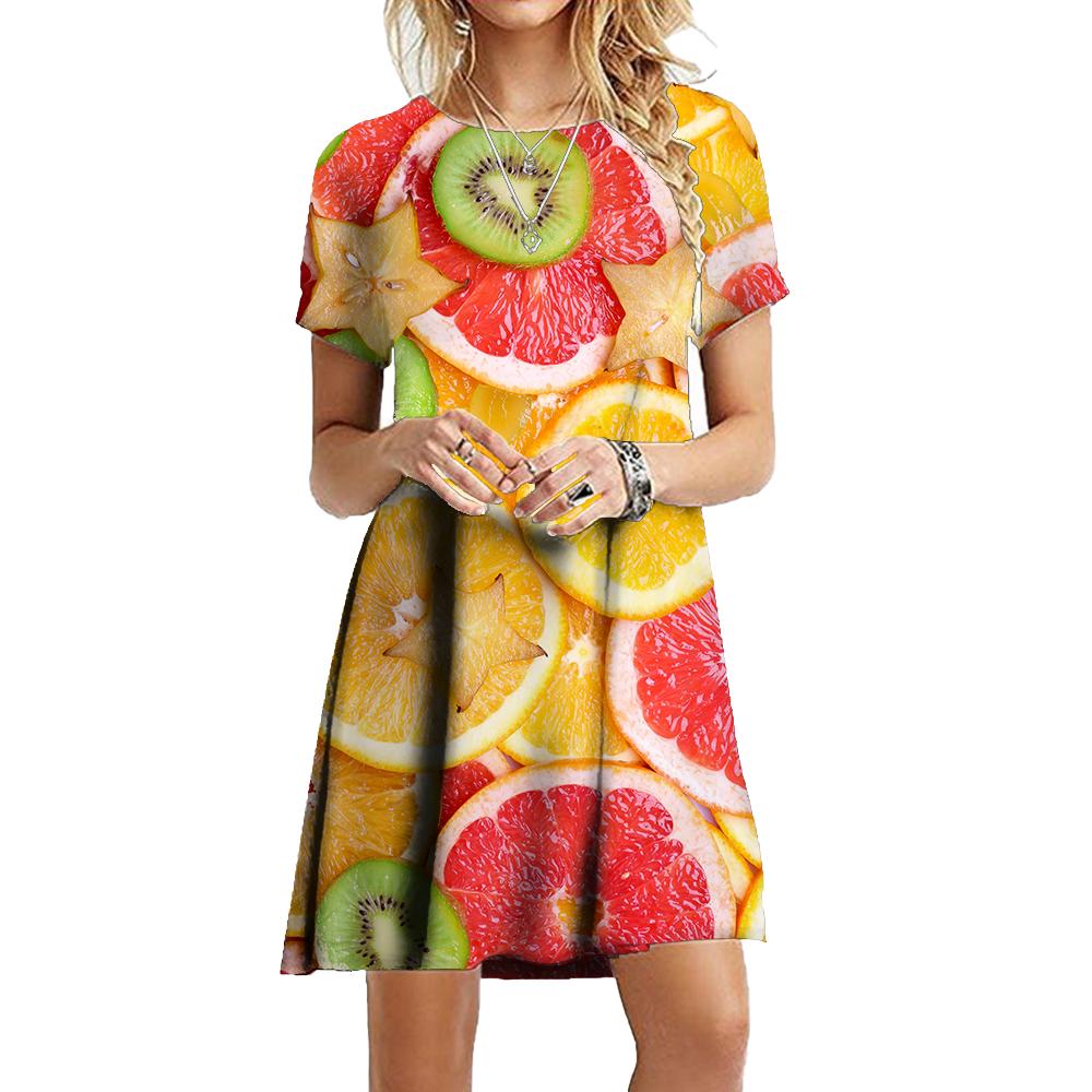 Повседневные платья женские с коротким рукавом Сарафаны 3D-печать Модные платья больших размеров Мини-платья Халаты