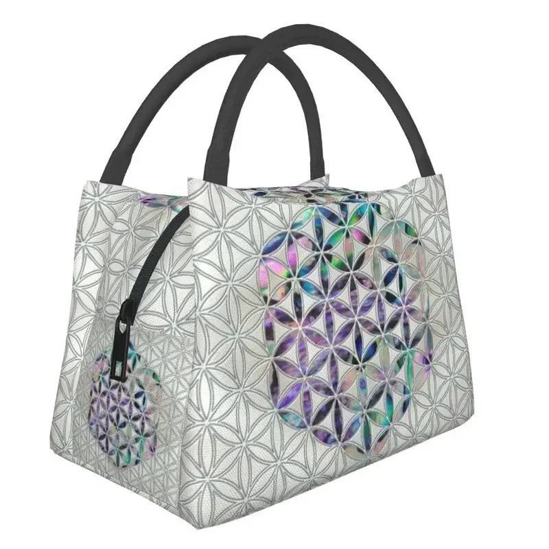 Цветок Жизни Раковина Абалона на Жемчужине Изолированная Сумка-тоут для ланча для женщин Геометрическая Мандала Портативный Охладитель Термальная Коробка для Бенто
