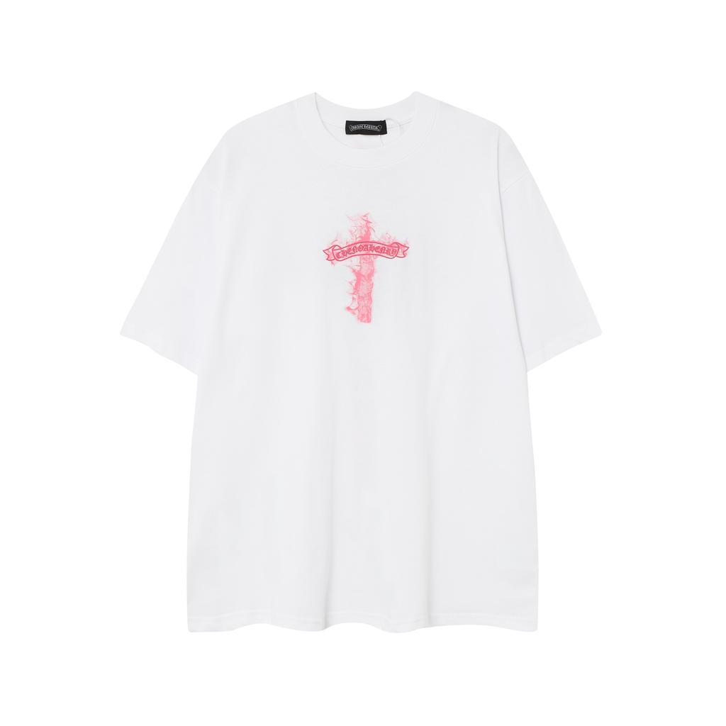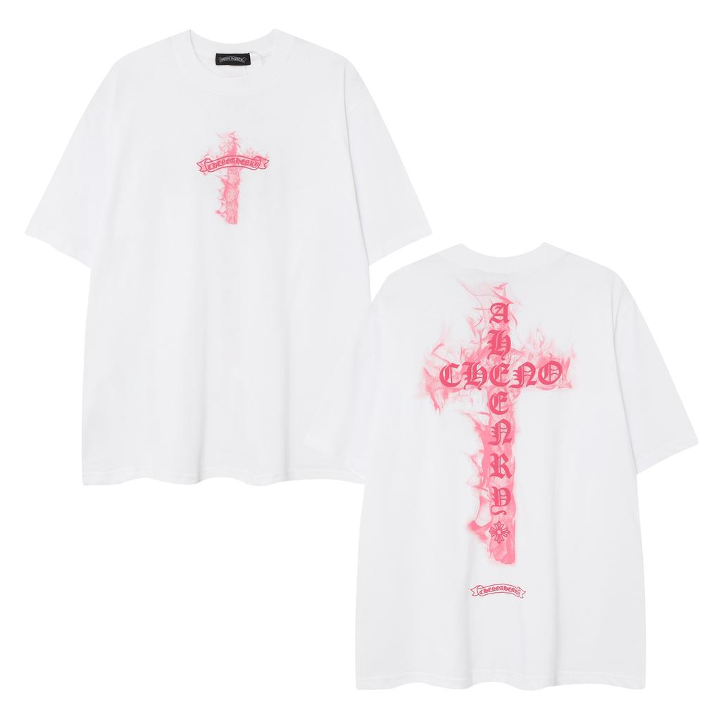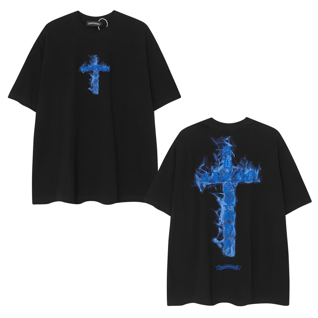 9986 CHROME HEARTS 2025 Лето Новая Высококачественная Хлопковая Круглая Горловина Свободная Футболка Большого Размера Для Мужчин и Женщин Парная Футболка