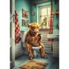 Современный лев, собака, хайленд, сидящая на унитазе и читающая газету, плакат, забавный принт с животными, картина на холсте, декор для ванной комнаты, картина