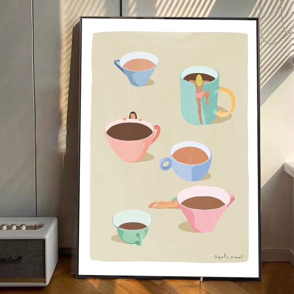 Кофейные чашки забавные художественные аниме-постеры липкие HD-качества настенные художественные ретро-постеры для домашнего декора комнаты Kawaii
