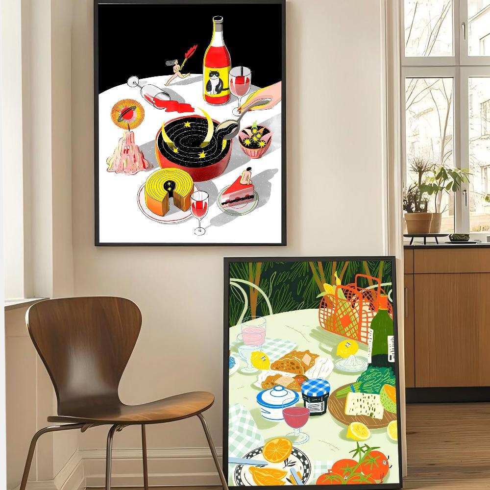 1 шт. Еда Плоская Иллюстрация Плакат HD Плакаты Главная Комната Бар Кафе Декор Искусство Настенная Живопись Картина