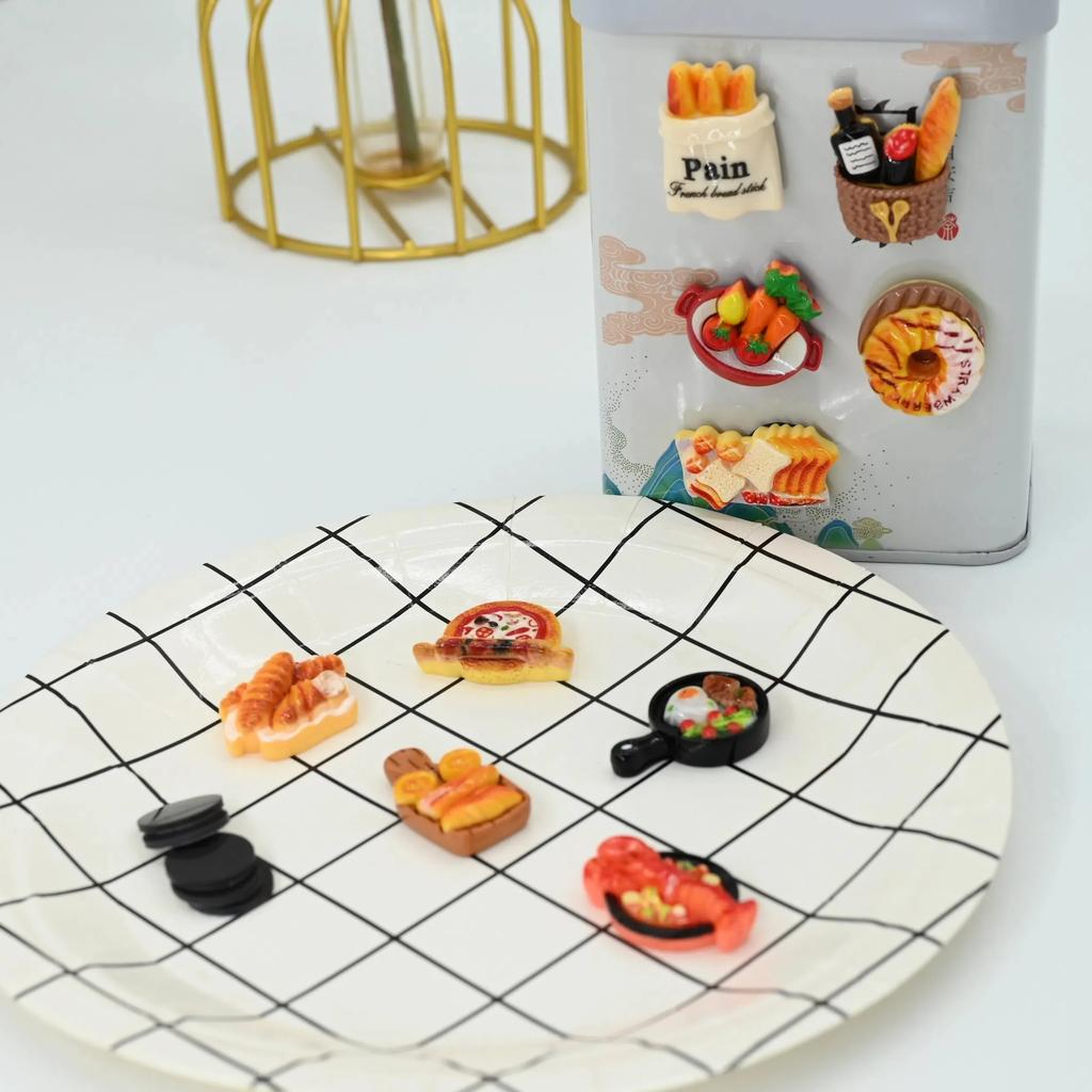 Упаковка из 5 штук, ассорти из 3D креативных магнитов на холодильник с тематикой еды, пластиковые декоративные магниты на тему кухни, прямоугольные кухонные магниты