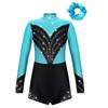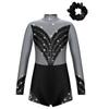 Танцевальный комбинезон для девочек с длинным рукавом, воротником-стойкой, блестящими стразами, вырезом на спине и аксессуаром для резинки для волос