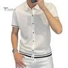 Мужская рубашка с лацканами, коротким рукавом, пуговицами, планкой, рубашка с полосками, дышащая летняя повседневная рубашка