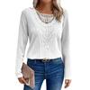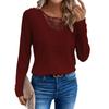 Футболка с длинными рукавами Solid Solor Lace Patchwork с кружевным круглым вырезом для женщин