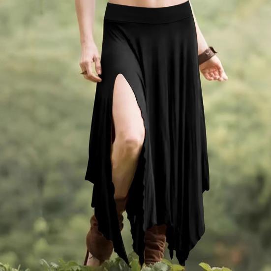 Элегантный дизайн с высокой талией: Подчеркните свой стиль с помощью этой длинной юбки с высокой талией, эластичным поясом и неровным подолом, которая без труда подчеркнет вашу модную элегантность.
