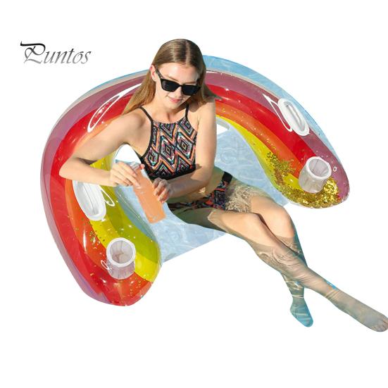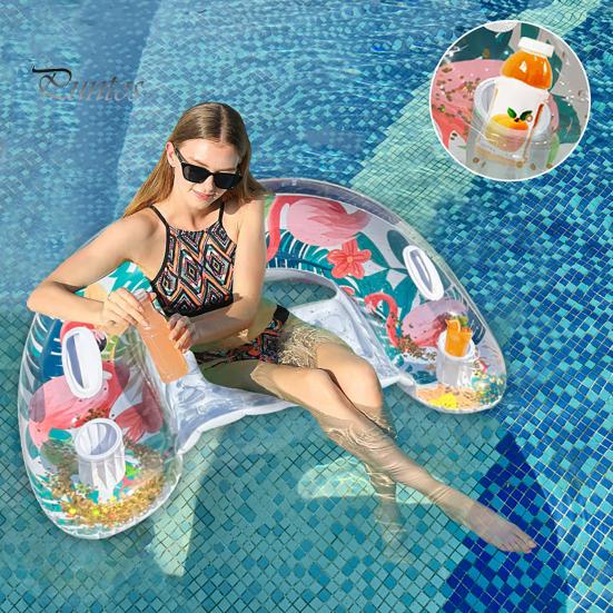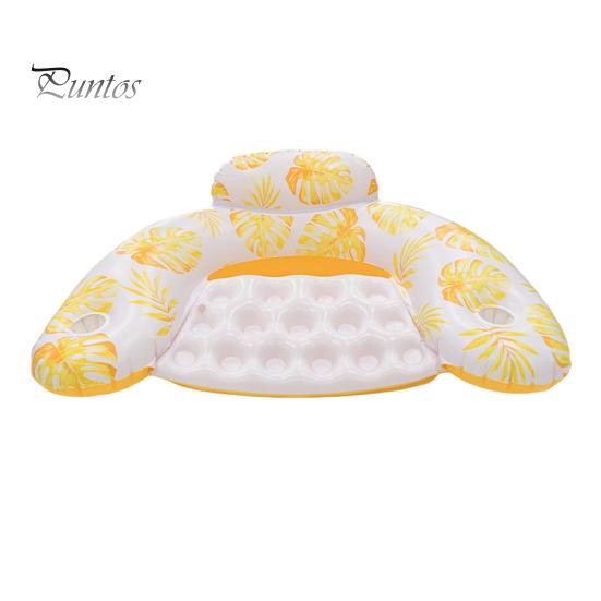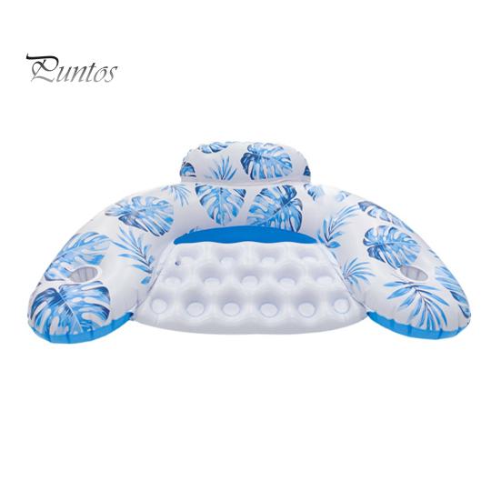 Удобный держатель для стакана: Оставайтесь свежими во время плавания с помощью встроенного подстаканника в этом надувном шезлонге. Потягивая любимый напиток, вы стильно отдыхаете на воде.