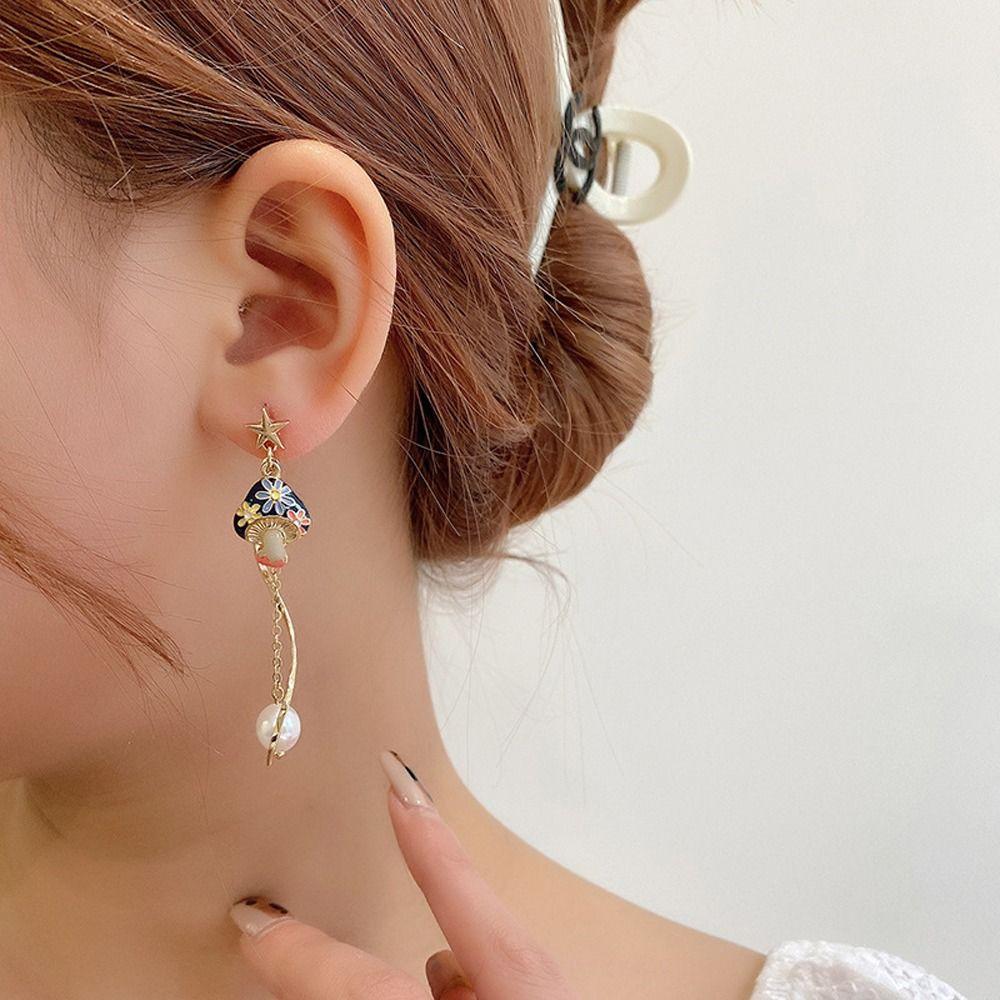 Асимметричные серьги-подвески из цинкового сплава с имитацией жемчуга в корейском стиле для повседневной жизни