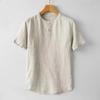 Мужская льняная рубашка с короткими рукавами в китайском стиле, мужская летняя тонкая повседневная рубашка из хлопка и льна в стиле ретро с небольшим воротником-стойкой