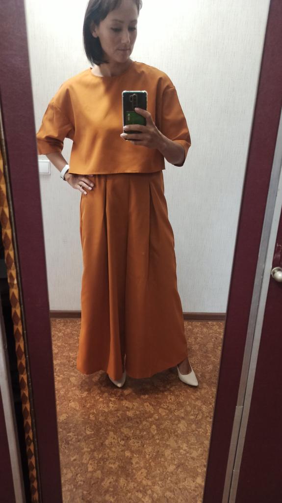 Костюм неплохой, только цвет конечно на фото интереснее, в реальности много серого и выглядит мрачно. Меня это расстроило. Что касается размеров, на мой 48 размер через чур оверсайс. Рубашка ещё пойдёт, а вот брюки сильно большие. Вообщем совсем не то что я ожидала. На фотографии получается намного светлее чем в реальности, даже у меня. Ну кто любит серый может и понравится, по мне он выглядит скучно, темболее для лета.