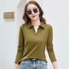 Осенняя женская рубашка поло, хлопковая однотонная футболка с длинными рукавами, лоскутные женские рубашки поло для женщин
