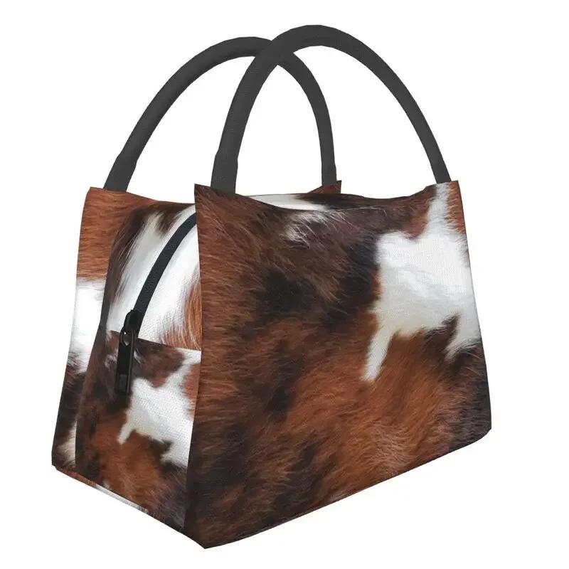 Коровья кожа 3D печать многоразовый ланч-бокс женский водонепроницаемый меховая текстура термохолодильник еда изолированный ланч-бокс