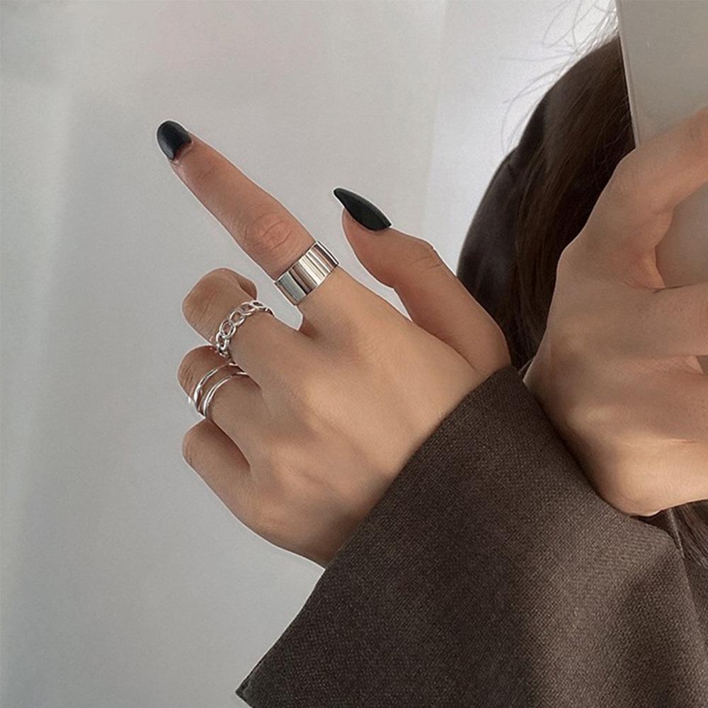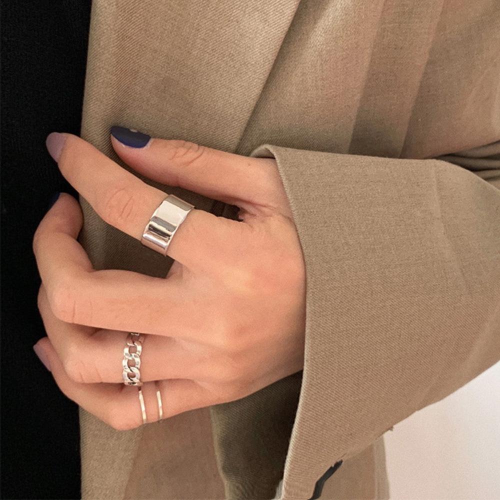 Широкое кольцо 3 шт./комплект круглые простые металлические винтажные открытые кольца кольца набор цепочка ювелирные изделия женские подарки
