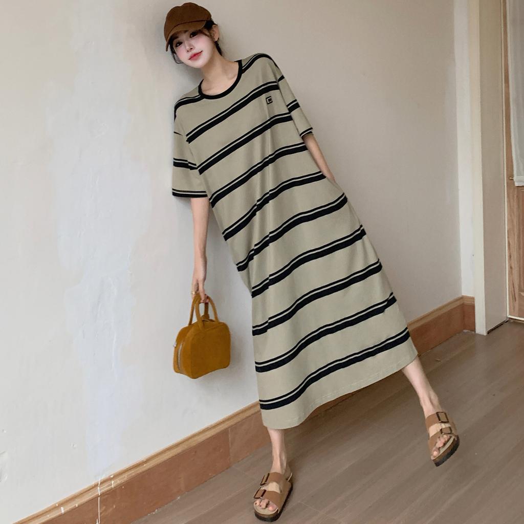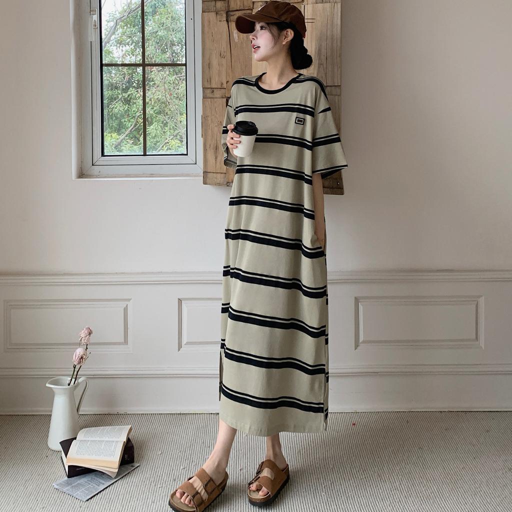 DIMANAF 2025 Летнее платье больших размеров для женщин Повседневное винтажное хлопковое платье Базовое свободное полосатое длинное платье