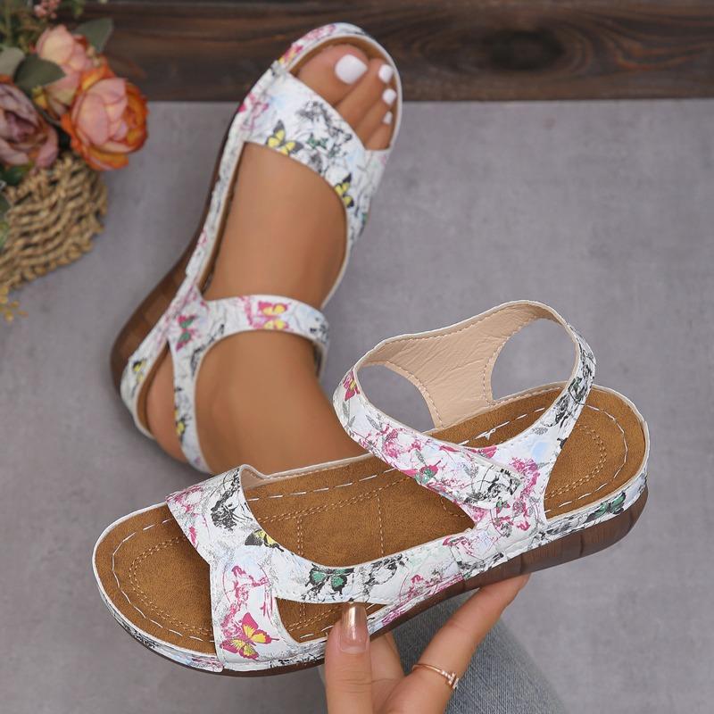 Сандалии Новые цветочные босоножки с толстой подошвой Большие размеры Женские туфли Magic Strap Легкие женские туфли