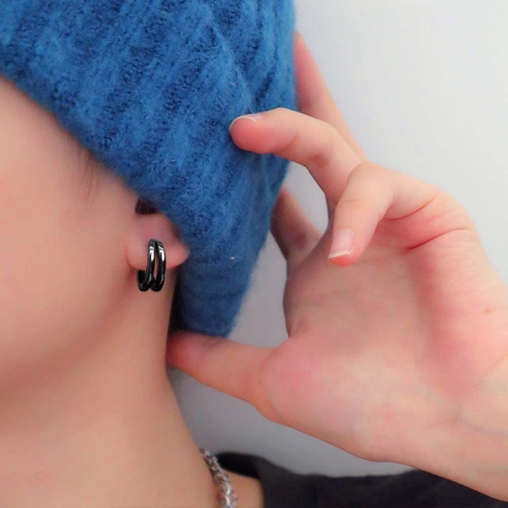 Многослойные круглые серьги-гвоздики черного серебристого цвета, панк-украшения, мужские серьги-кольца