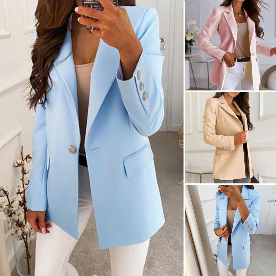 Универсальная элегантность: Ощутите простоту и изысканность с этим базовым женским пиджаком, отличающимся вневременным однотонным дизайном, который излучает изысканную привлекательность и подходит для различных случаев.