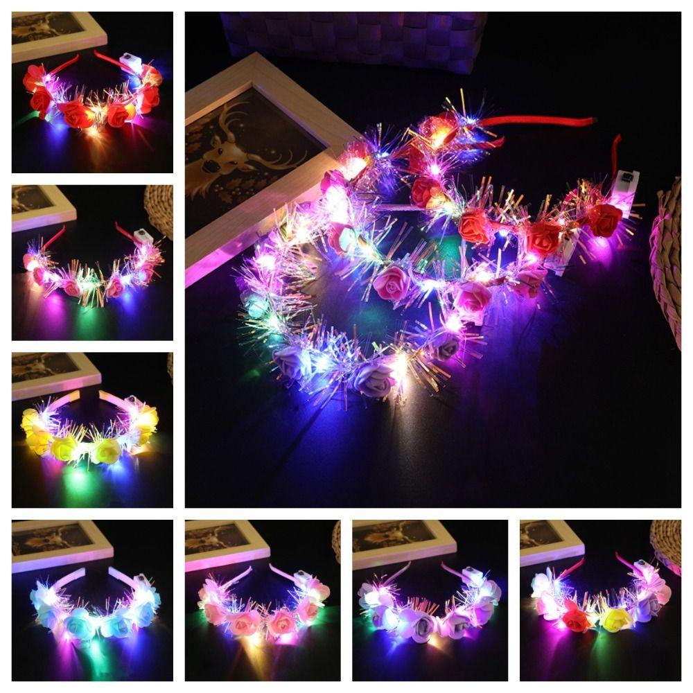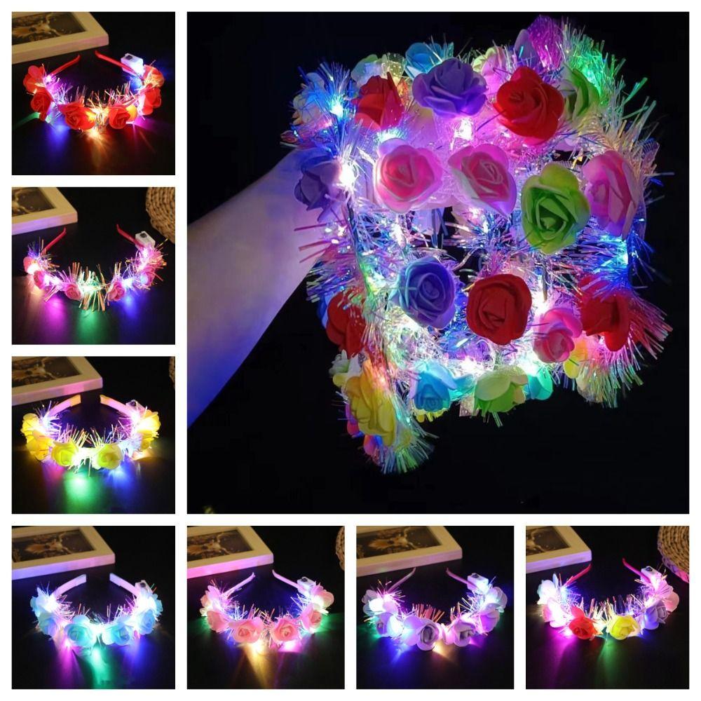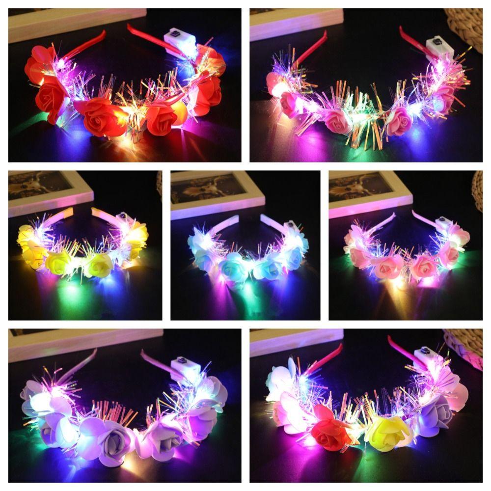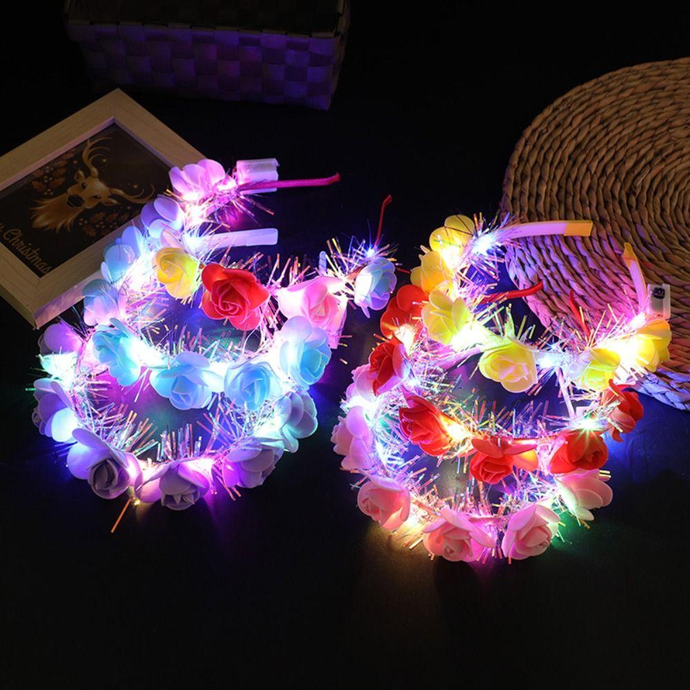 Повязка на голову с светящимся цветочным венком, цветочным украшением на голову, светящейся цветочной короной на день рождения