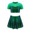 Детский блестящий танцевальный костюм для девочек, кроп-топ со стойкой, сетчатая вставка, открытая спина, с юбкой — купить товар онлайн с бесплатной доставкой до всему миру!