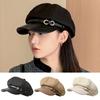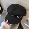 Восьмиугольная шляпа в корейском стиле с кожаной пряжкой, повседневная черная шляпа-берет для уличной одежды