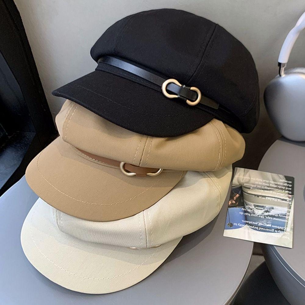 Восьмиугольная шляпа в корейском стиле с кожаной пряжкой, повседневная черная шляпа-берет для уличной одежды — купить товар онлайн с бесплатной доставкой до всему миру!