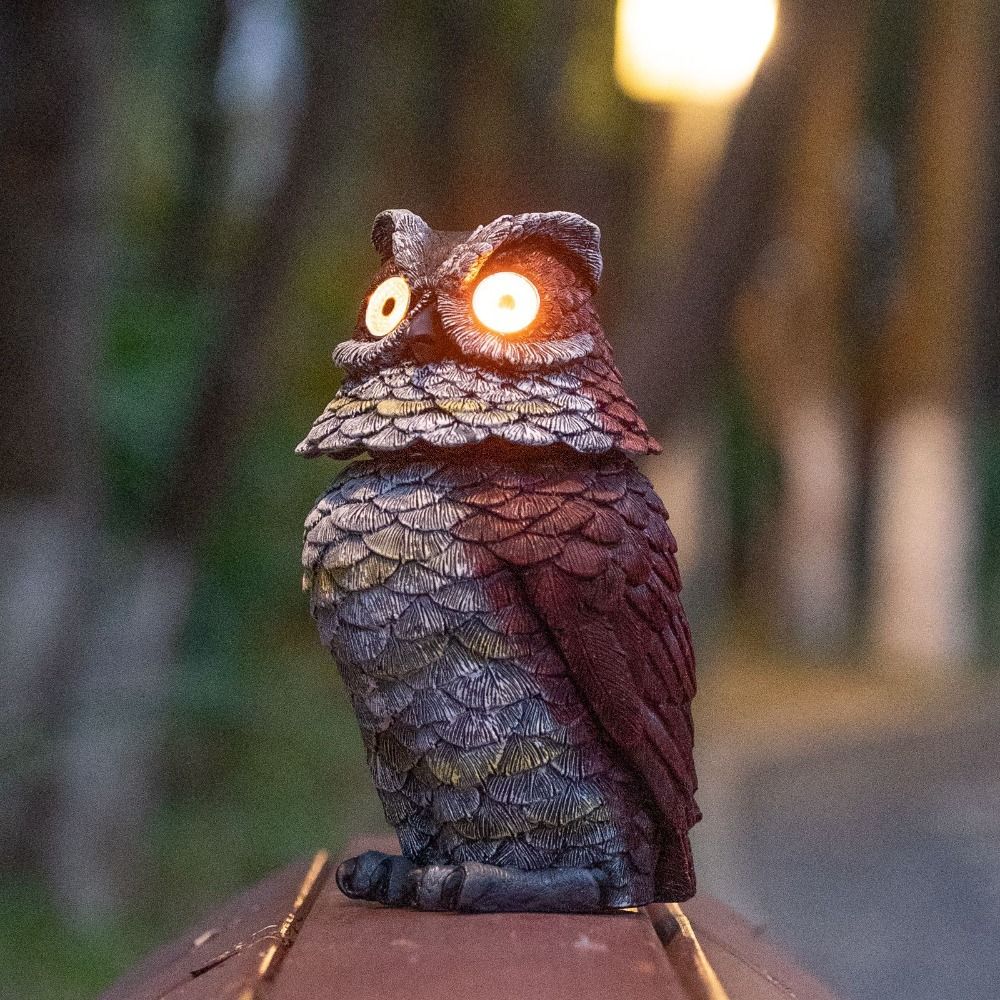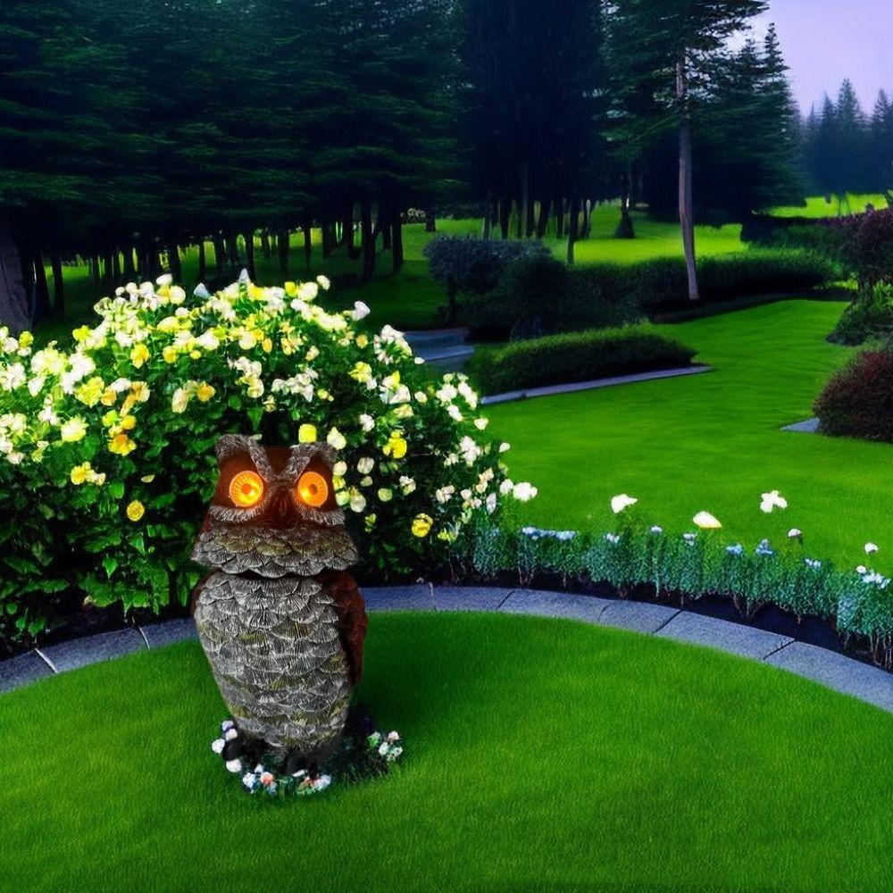 Милые скульптуры животных, легкая смоляная садовая статуя, лампа, поделки, сова, солнечный свет, газон