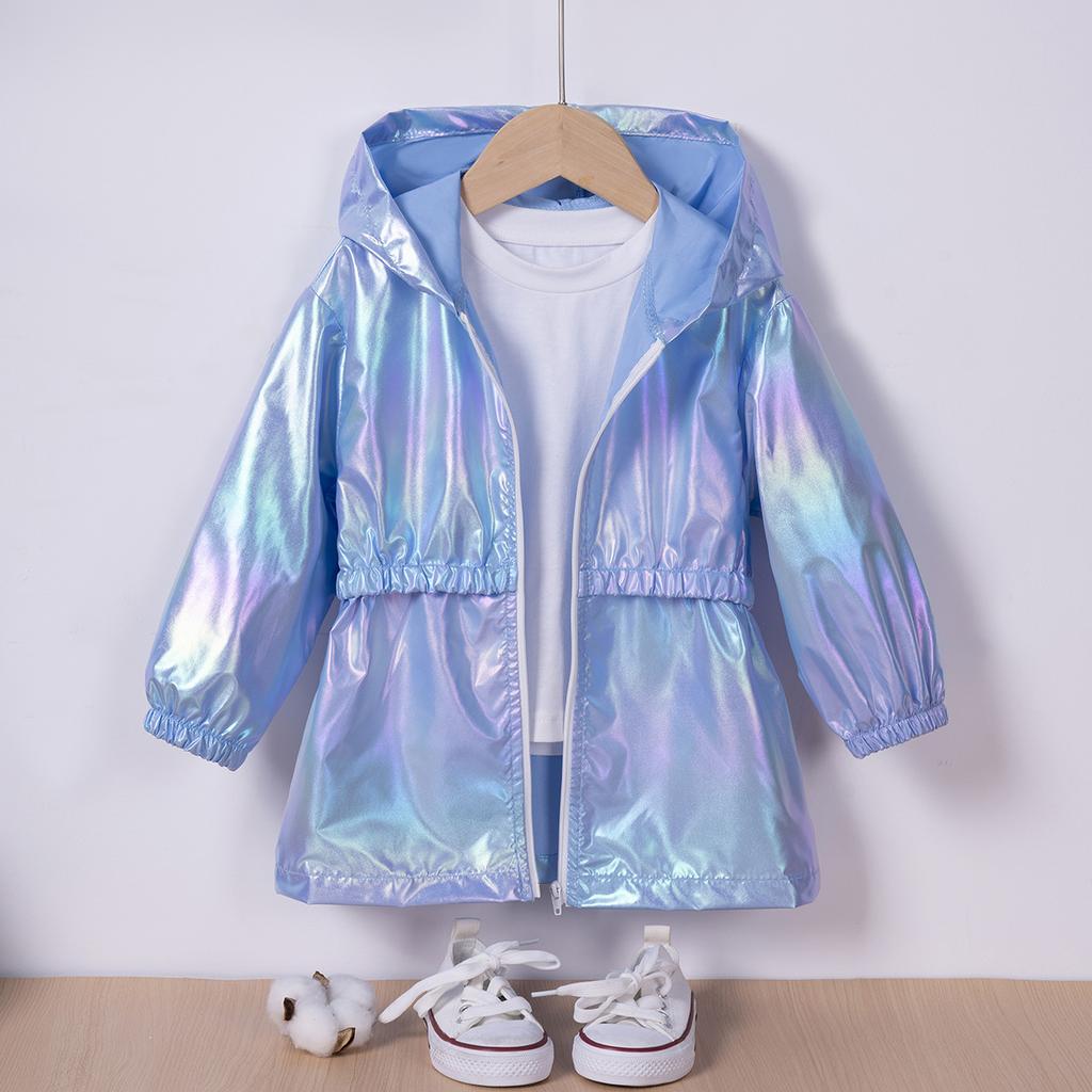 Детская тонкая куртка весна-осень, градиентная переливающаяся куртка с капюшоном на молнии, солнцезащитная одежда
