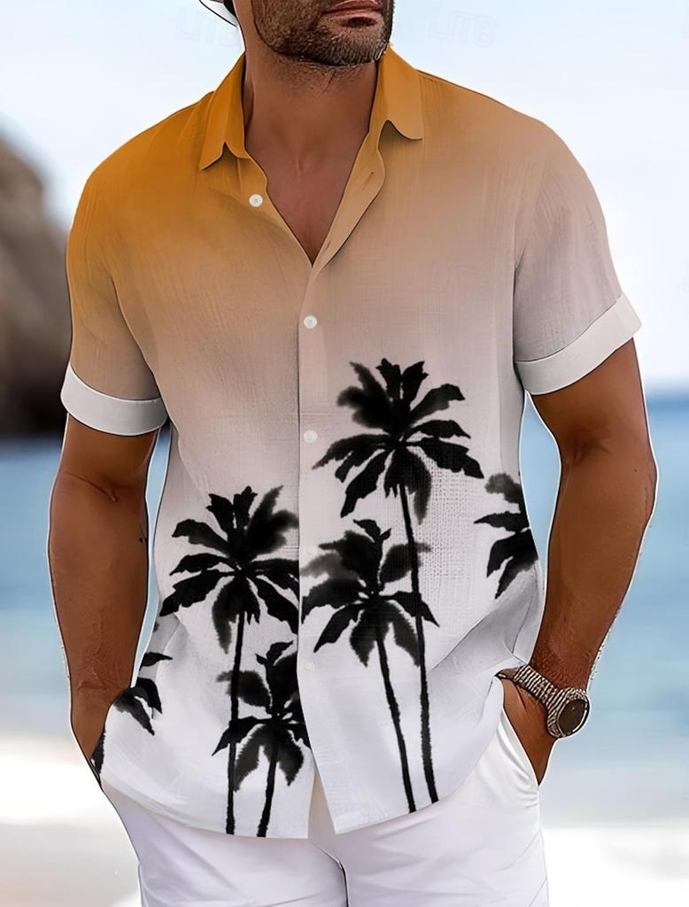 Мужская летняя гавайская рубашка Coconut Tree, рубашка Aloha с коротким рукавом, гавайский летний отпуск, отложной воротник на пуговицах