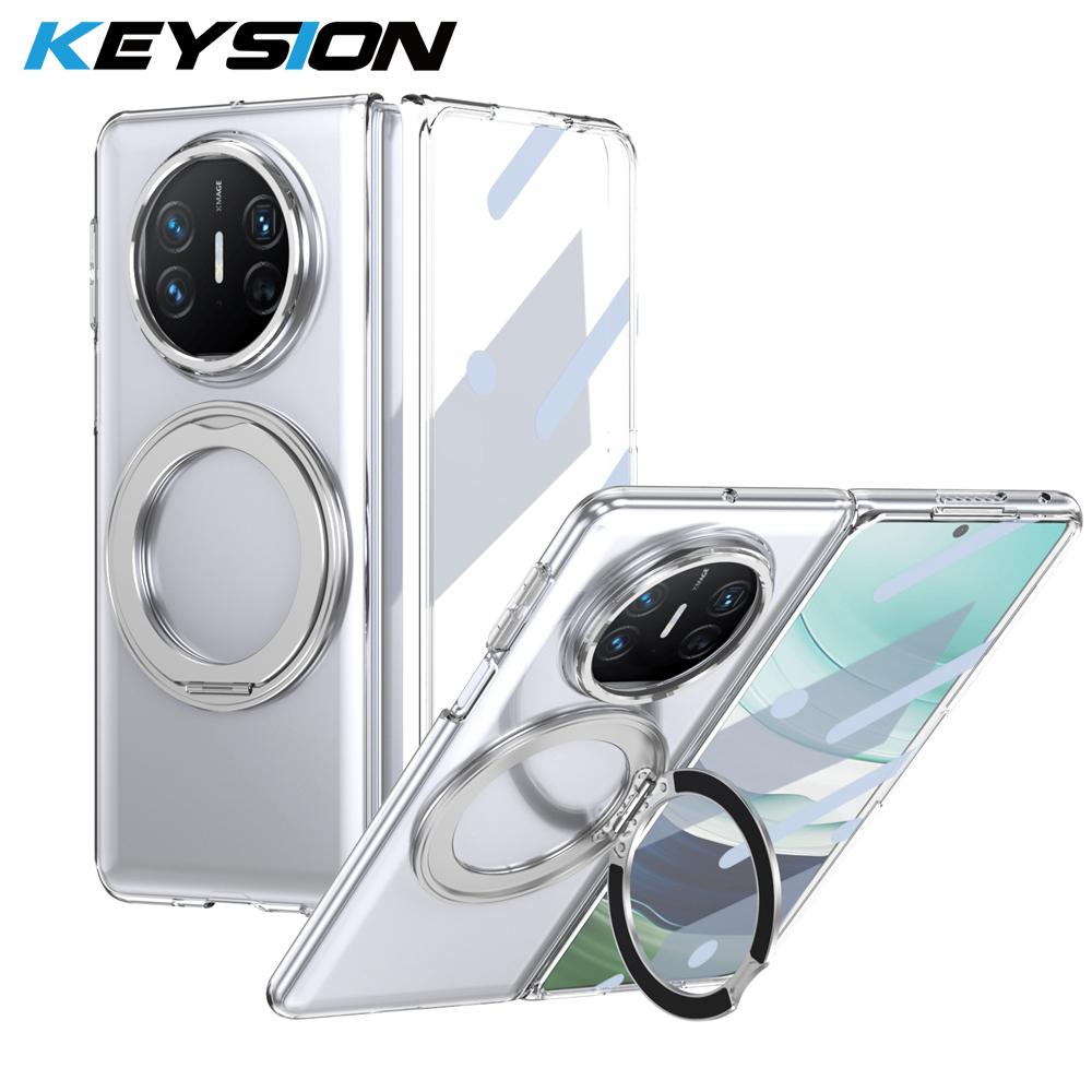 KEYSION Вращающийся на 360° магнитный чехол-подставка с кольцом для Huawei Mate X6 X5 X3 Прозрачный жесткий чехол для телефона из ПК с защитой экрана