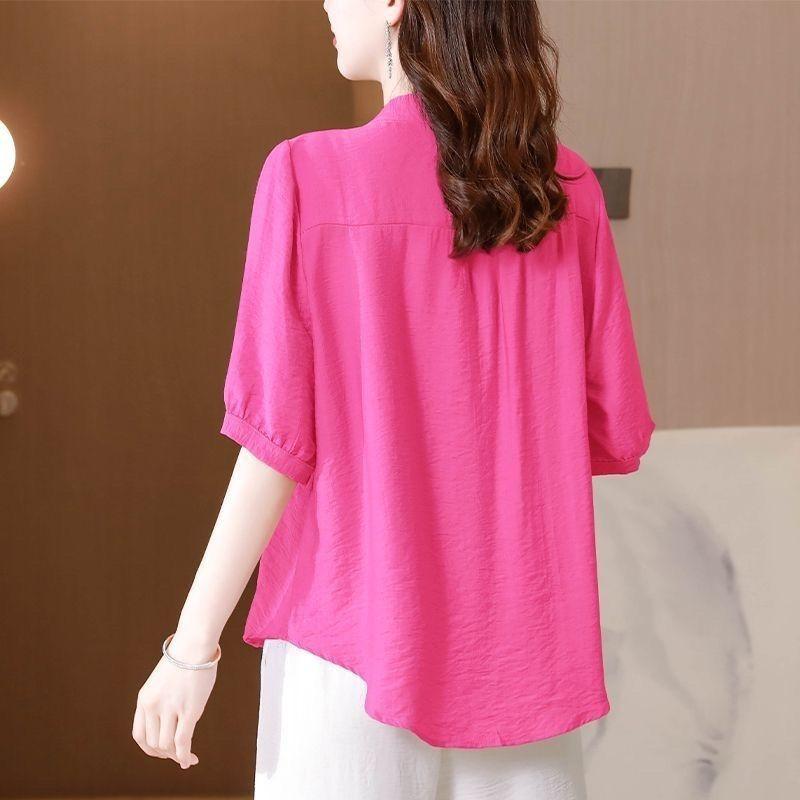 Модная вышитая тенселевая рубашка с коротким рукавом для женского лета, новая свободная хлопково-льняная блузка