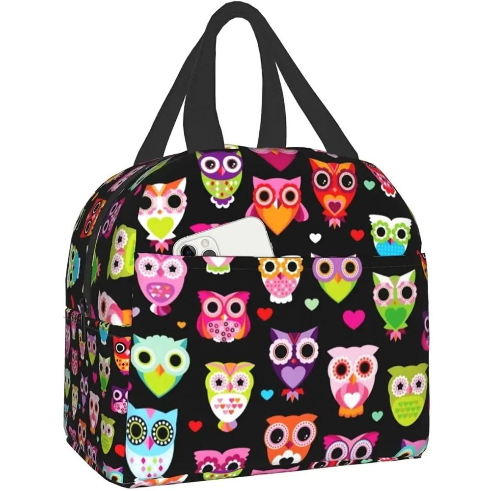 Сумка для ланча с мультяшными совами, изолированный холодильник, сумки-тоут Bento, многоразовый контейнер для еды для женщин, офиса, пикника, работы, пляжа