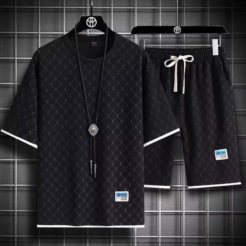 Летний мужской спортивный комплект, повседневная футболка с коротким рукавом и круглым вырезом, спортивные шорты с буквенным принтом, комплект из 2 предметов