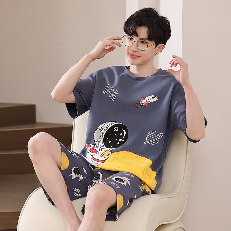Летняя мужская пижама с симпатичным мультяшным принтом, топы с короткими рукавами и шорты, одежда для сна, домашняя одежда для студентов, комплект из двух предметов, одежда для сна для мальчиков, домашняя одежда для мужчин