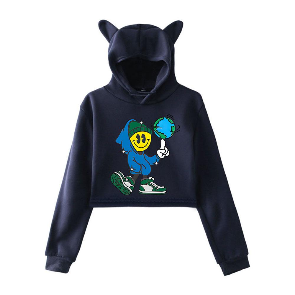 Connor Price Printed Cat Ear Hoodie Women Long Sleeve Short Shirts Women Casual Streetwear Crop Tops