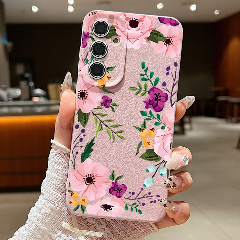 Ударопрочный чехол с цветочным принтом для телефона Samsung S25 Ultra S24 FE S23 S22 A56 A36 A55 A16 A26 A35 Тонкий матовый кожаный чехол-бампер из ТПУ с текстурой