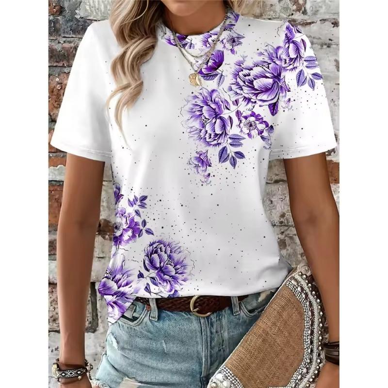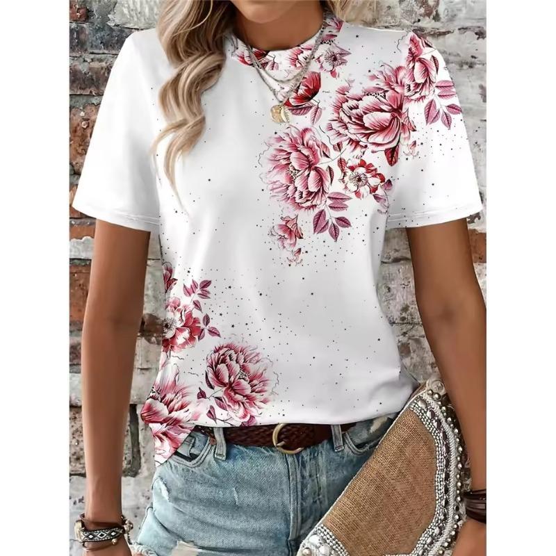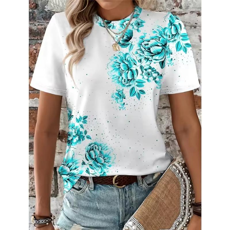 Новинка лета, женская футболка, повседневная, с цветочным принтом, праздничный 3D-принт, повседневные футболки с коротким рукавом, модные футболки с круглым вырезом для женщин