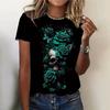 Футболка в готическом стиле больших размеров для женщин с 3D-принтом в виде фигур, черепов и цветов, с круглым вырезом и коротким рукавом, слегка эластичная футболка для женщин в уличном стиле
