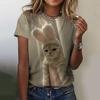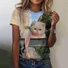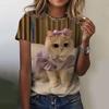Популярная женская футболка с 3D-принтом, кошка, летняя мода, короткий рукав, круглый вырез, уличная одежда, повседневный топ в стиле Харадзюку