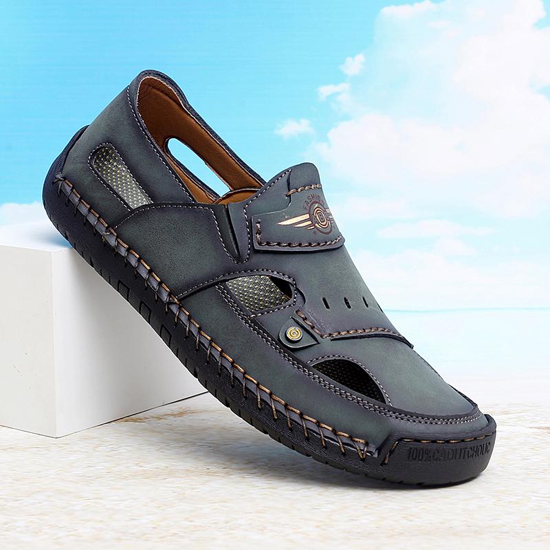 39-48 Летние мужские кожаные пляжные сандалии ручной работы Мужские сандалии с закрытым носком Сандалии большого размера