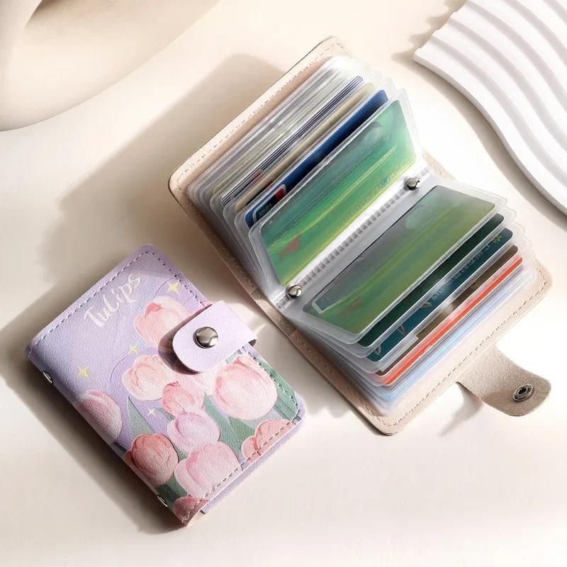 Мини-держатель для карт в стиле ретро с масляной живописью, женский, большой емкости, с несколькими отделениями для карт, чехол для удостоверения личности, сумка для хранения водительских прав, кошелек для монет