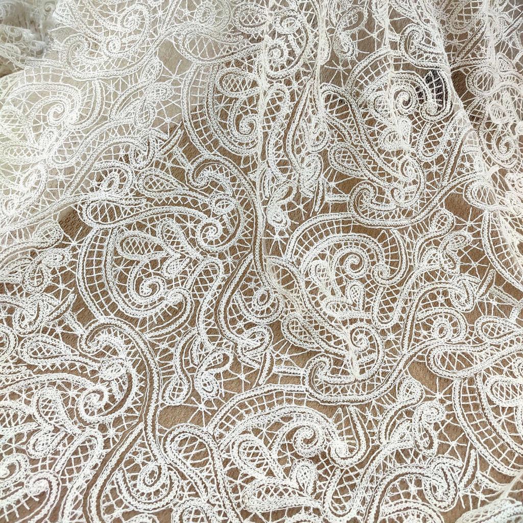 1 метр/лот 130 см в ширину Изысканная бежевая ажурная цветочная вышитая ткань хлопковая нить сетчатая ткань детская одежда свадебное платье аксессуары