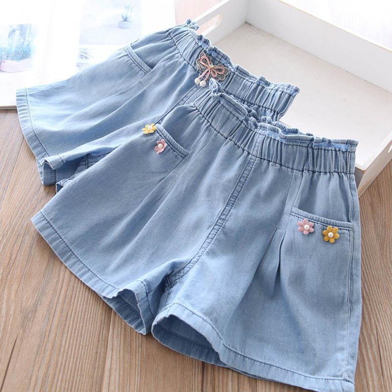 Летние тонкие повседневные джинсовые шорты для девочек, средние детские удобные шорты со средней талией